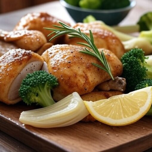 Ignite your taste buds with this Spicy Lemon-Garlic Chicken Maryland with Fennel and Red Onion, a bold Mediterranean-inspired dish. Juicy chicken, fragrant fennel, crisp broccoli, and a kick of chili create a perfect balance of heat and zest. Ideal for spice lovers and those craving a vibrant meal, this dish pairs wonderfully with mashed potatoes or a light salad. Adjust the chili powder to dial up or down the heat!