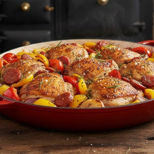 Pro Tip: Don’t move the chicken while searing — let the skin crisp undisturbed. A splash of white wine with the broth adds depth.